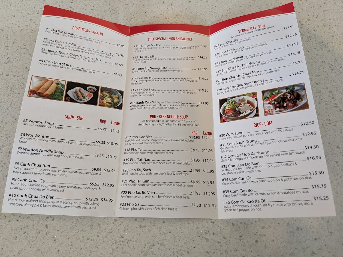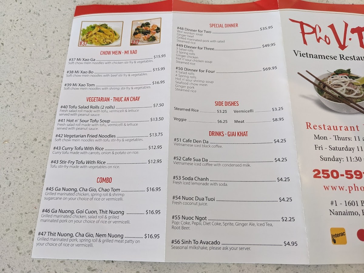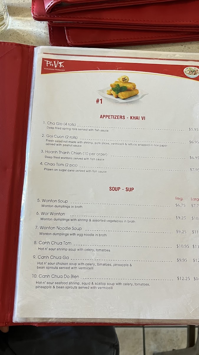 Pho VTa Vietnamese Restaurant Menu